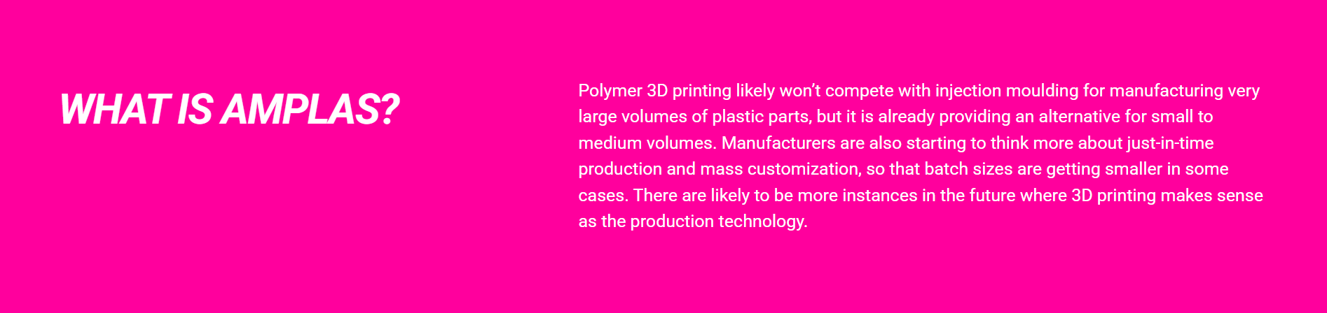 AMPLAS designed for the additive manufacturing community to convene, and for industry-showcasing products, technologies, solutions, and applications. Stay up to date with the constantly changing world of additive manufacturing. See the latest 3D technologies from exhibitors, including 3D printing, 3D scanning, CAD/CAE, and related technologies. Find solutions to your manufacturing challenges, straight from the experts.